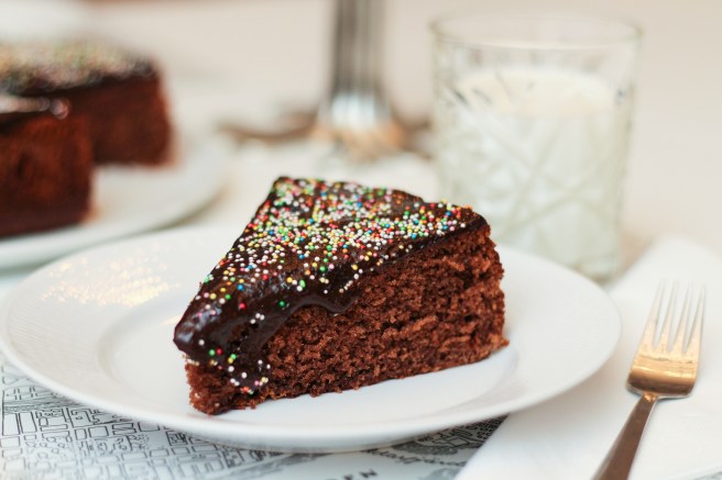 Hvað passar betur með helgarkaffinu en mjúk og dásamleg súkkulaðikaka? Mér þykir nýbökuð súkkulaðikaka gjörsamlega ómótstæðileg. Þessa bakaði ég um síðustu helgi þegar ég var ein heima, sem var afleit hugmynd. Ég fékk mér kökuna með kaffinu yfir daginn og borðaði hana svo í kvöldmat. Ég varð því himinlifandi þegar ég kom heim úr vinnunni daginn eftir og krakkarnir voru búnir með kökuna.