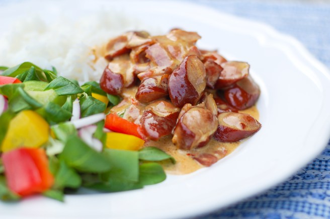 Fimmtudagur: Pylsupottréttur með beikoni og sweet chili rjómasósu