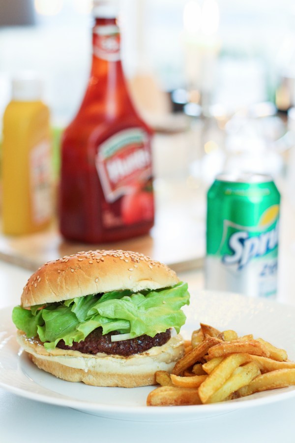 Við byrjuðum páskafríið á að grilla okkur hamborgara. Mér þykja hamborgarar svo góðir en elda þá sárasjaldan. Þessir voru eins einfaldir og hægt er að hafa þá en góðir engu að síður. Ostur, kál, laukur og margar sósur til að velja á milli. Gott!