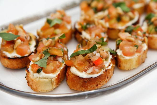 2. Tómatcrostini með þeyttum fetaosti er öruggt kort sem slær alltaf í gegn. Ég gæti lifað á þessu!