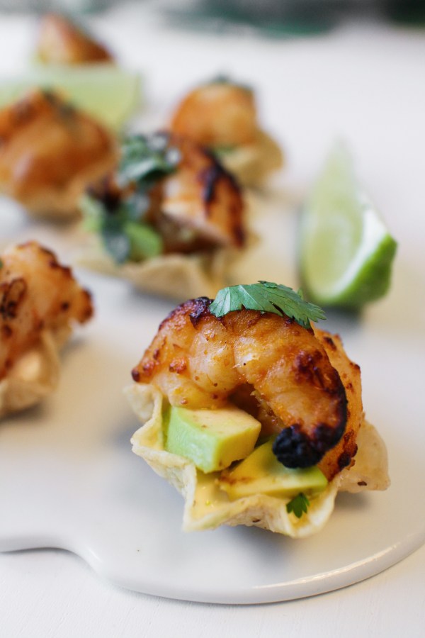 7. Tortillaskálar með grilluðum tígrisrækjum, avókadó og sýrðum rjóma og kælt hvítvín… þarf að segja eitthvað meira??