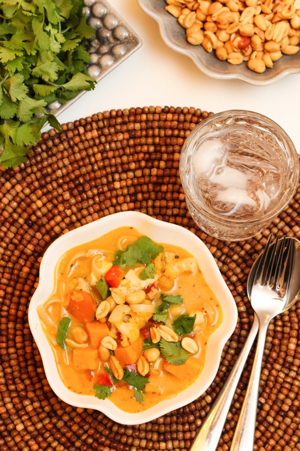 Ég bar súpuna fram með snittubrauði, brúnuðu smjöri og ferskri basiliku. Það tók enga stund að koma matnum á borðið, öllu var bara húrrað í pottinn og látið sjóða saman á meðan ég lagði á borð og kveikt á kertum. Fljótlegra, einfaldara og margfalt betra en að sækja skyndibita!