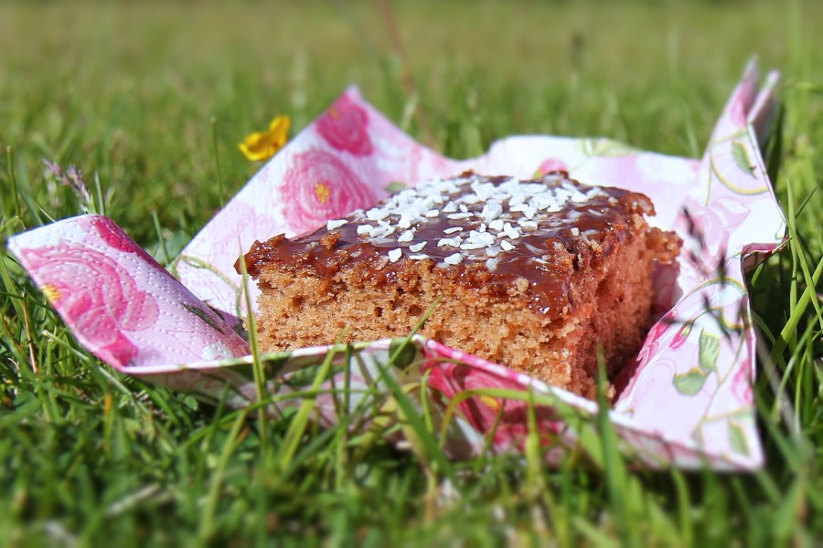 Látið kökuna kólna og skerið í bita.